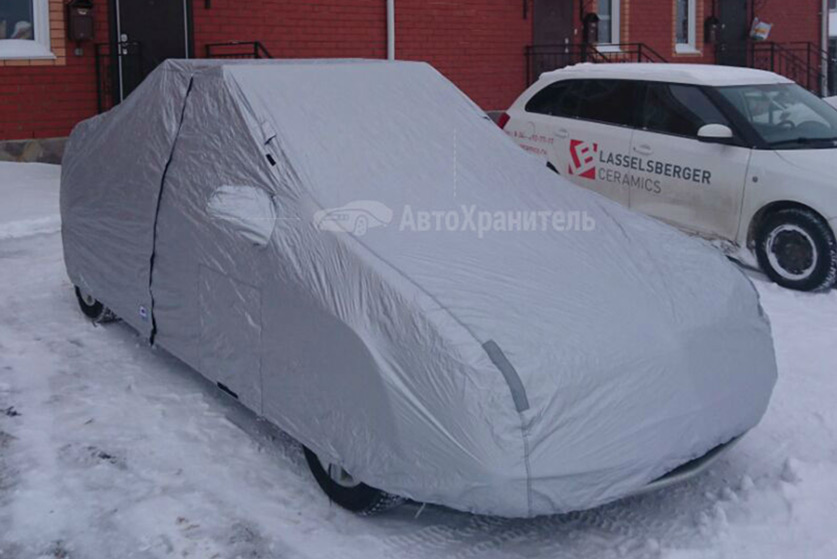Плюсы: Лёгкий, гибкий, с водоотталкивающей пропиткой. Отлично защищает от пыли, влаги и даже сильного дождя. Не «встает колом» на морозе, а также на нем не образуется наледь, что очень важно для лакокрасочного покрытия автомобиля.